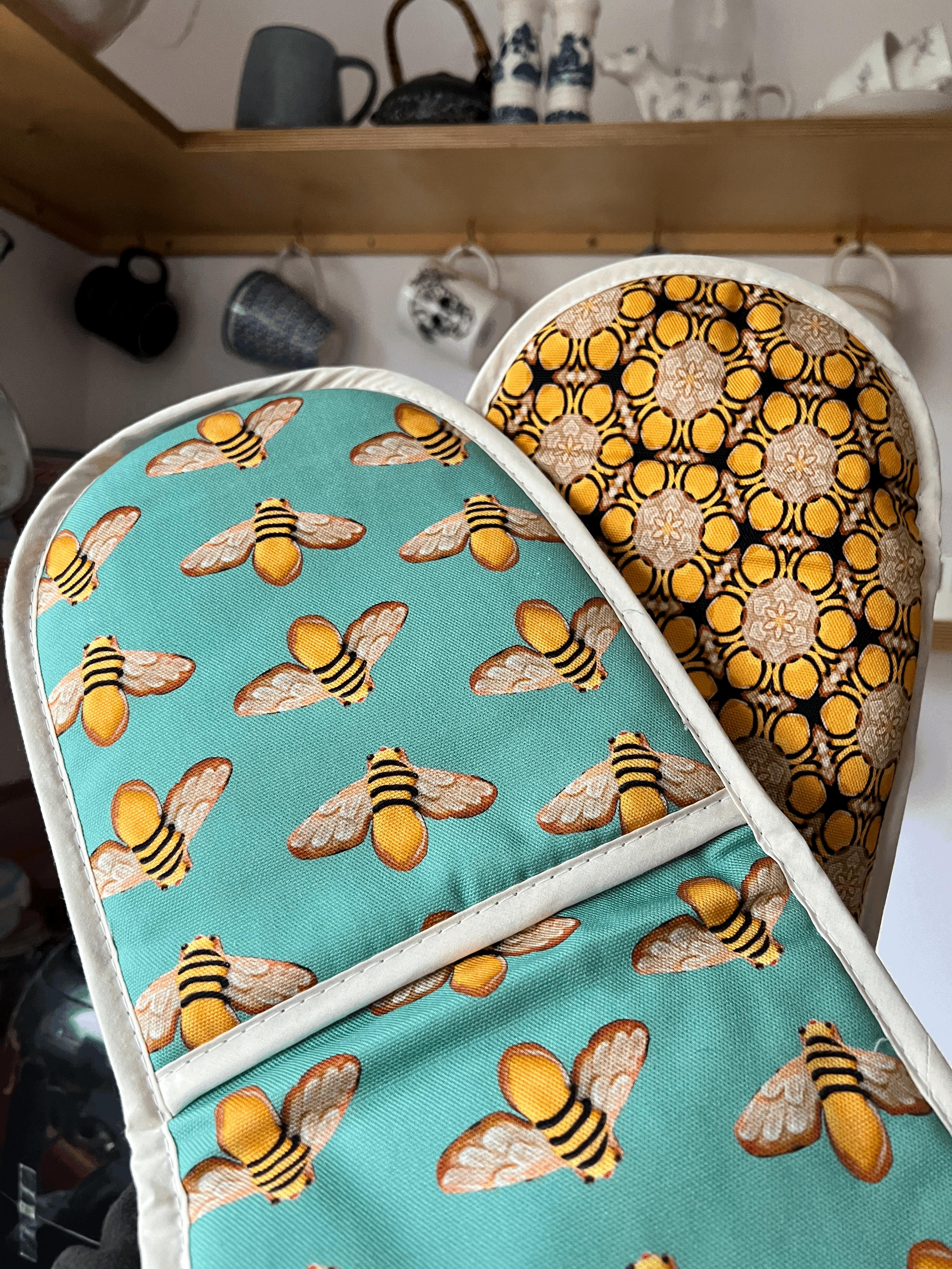 I am absolutely blown away by the quality and attention to detail with my order. Not only is the bee oven mitt I purchased stunningly beautiful, it is also the best oven glove I have ever owned. I bake regularly and have a tiny kitchen- I often take something out of the oven and end up holding it for ages- working out where I'm going to put it down ! I've been burned through all the other oven mitts I've tried, but I could probably carry hot cakes around all day with these!